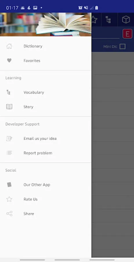 • Mini Dictionary ( You can bring this dictionary into pdf reader , browser or any other apps as screenshot no. 3)
