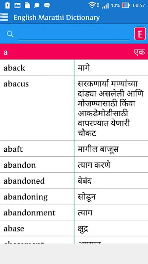 English <> Marathi Bi-directional Dictionary. You can use this offline dictionary as learning tool. Browse words like a real dictionary, search in English and Marathi, Words by category.