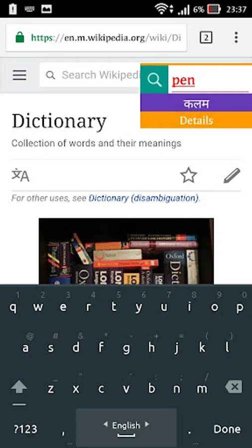 • Mini Dictionary ( You can bring this dictionary into pdf reader , browser or any other apps as screenshot no. 3)