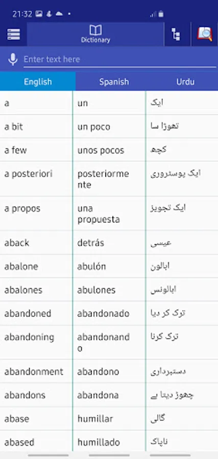 This dictionary support three language English, Urdu and Spanish Dictionary.