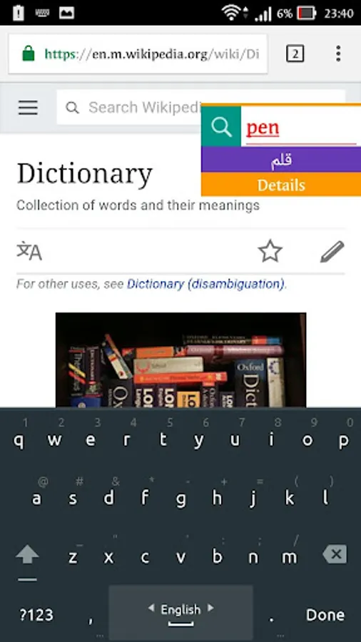 • Mini Dictionary ( You can bring this dictionary into pdf reader , browser or any other apps as screenshot no. 3)
