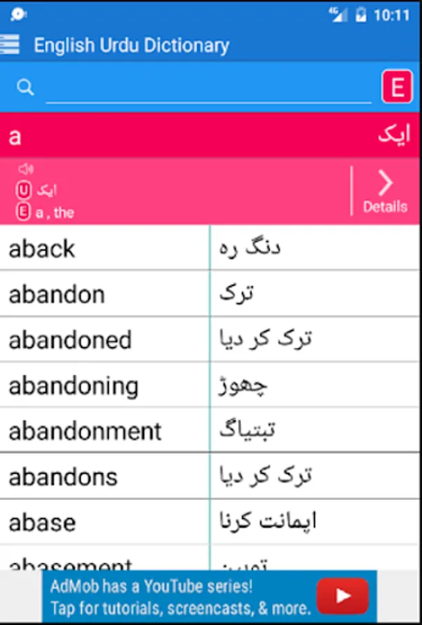 English <> Urdu Bi-directional Dictionary. You can use this offline dictionary as learning tool. Browse words like a real dictionary, search in English and Urdu, Words by category.
