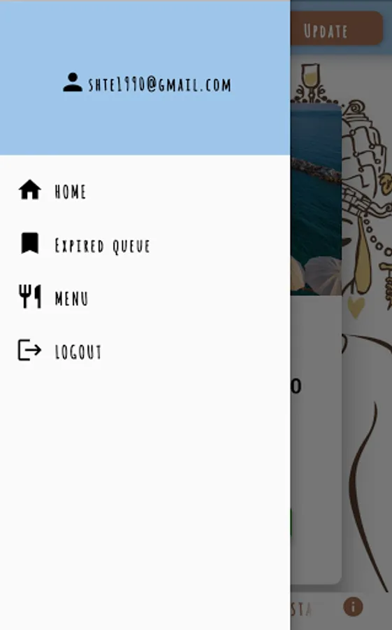 Entry into the queue by choosing the number of seats, with display of the number of tables already in the queue.