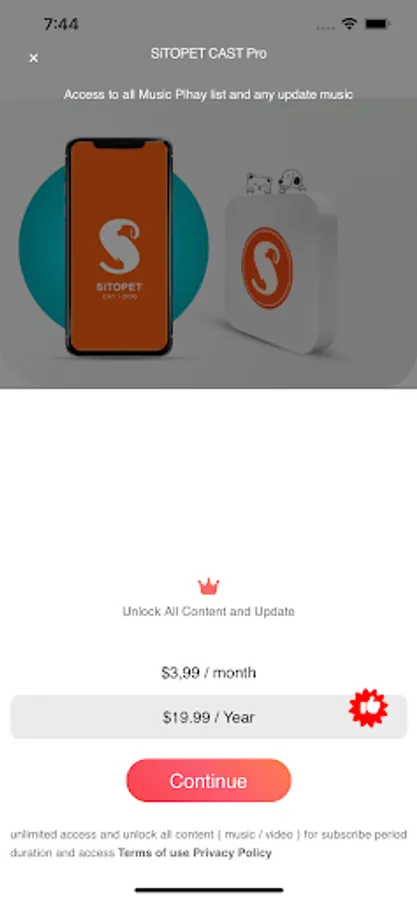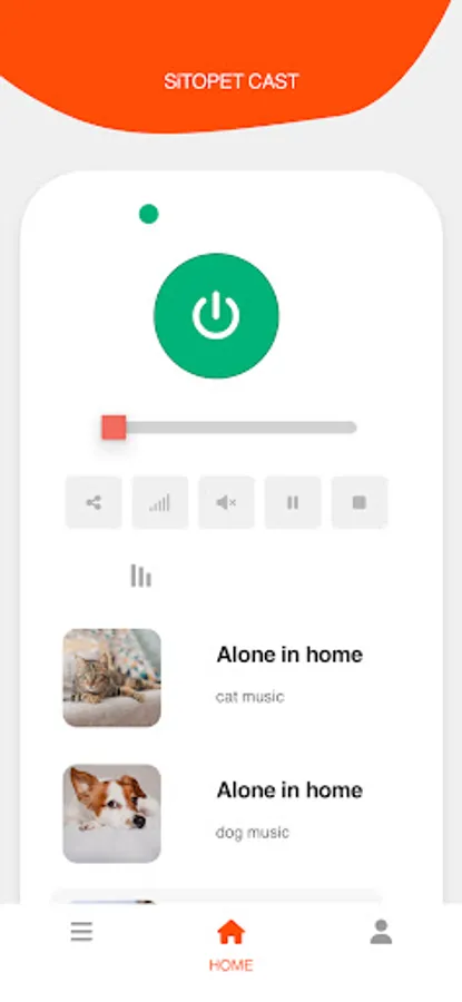By downloading sitopet Cast app and connecting to the cast box you can play beneficial calming music for your pet.