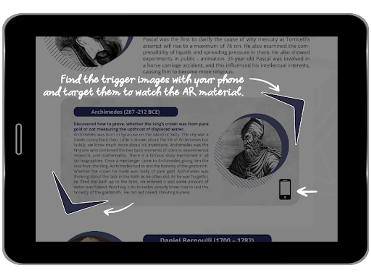 ARphymedes, an acronym for AR Physics Made for Students, resembles the name of probably the most famous physicist in history, Archimedes. Stories about this genius remind us that humankind will be nothing without the dreamers. We should give kids the opportunity to explore their dreams, and AR (augmented reality) is one way to do so.