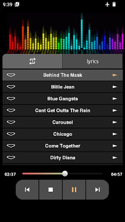 - Affiliate the paroles: profit from the paroles of the chaque chanson tout en l'écoutant.