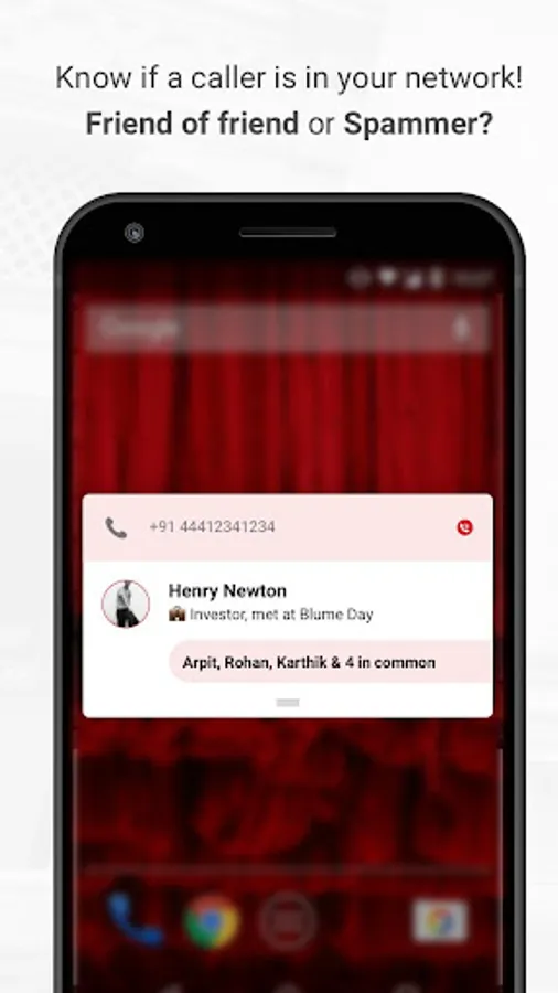 World’s first Caller ID that displays if the caller is in your 2nd degree network! Before you pick up the call, know if it’s a friend’s friend? or a customer? Make an informed decision. Mark and block spammers as well.