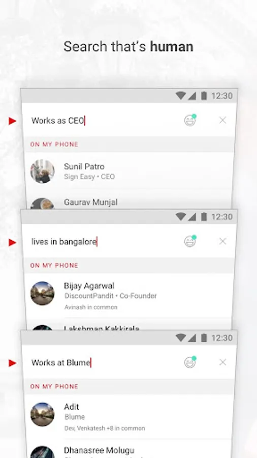 “Works at Google”, “Live in New York”, “Works as Engineer” - search the way you think to quickly look up the right contacts