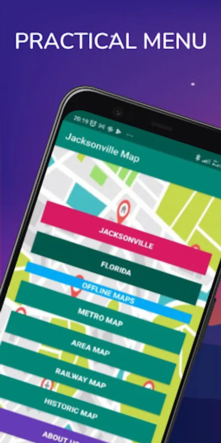 Offline maps for Jacksonville. Includes a complete set of offline maps for Jacksonville, things to do and see, area map, historical map of the territory from official sources.