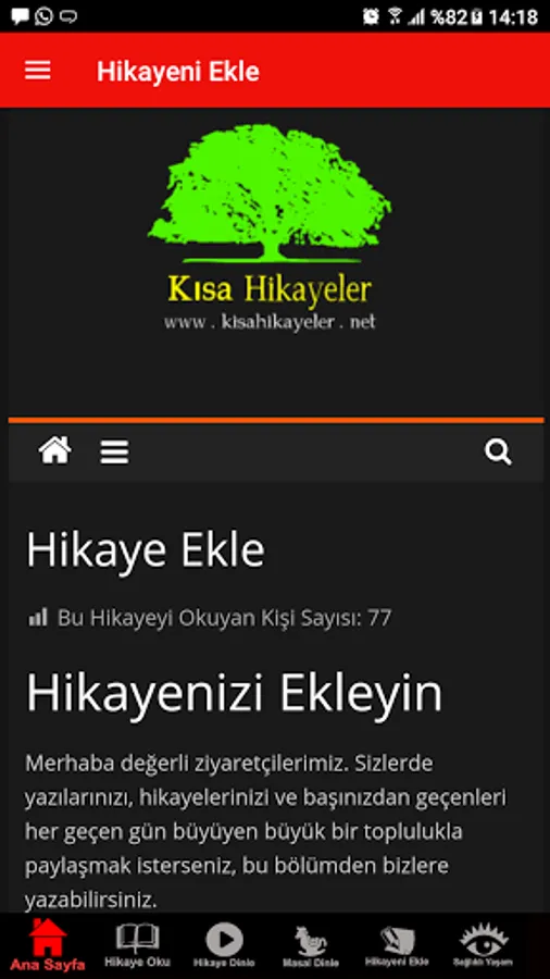 Hello, We have brought together different platforms for you in our Short stories application, it will be enough to download our application to read short stories or Listen to Stories and Tales.You can read and listen to different religious stories, exemplary stories, success stories, love stories, religious tales, educational tales, Turkish tales in the application.