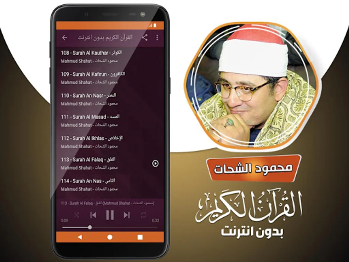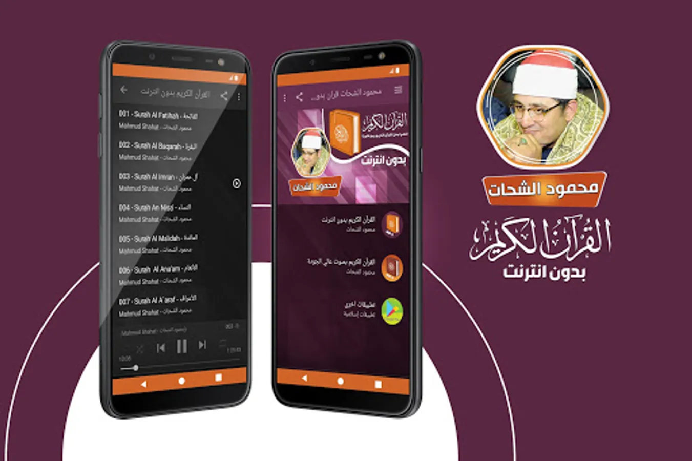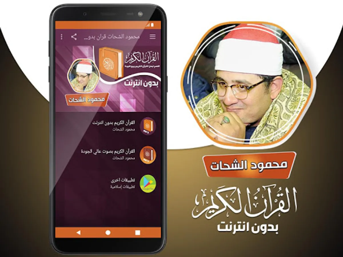 🔹 The application of the Noble Qur’an contains the voice of the reciter Mahmoud Al-Shahat, listening to the surahs of the Qur’an without the Internet, and this application is characterized by free recitation of the Qur’an