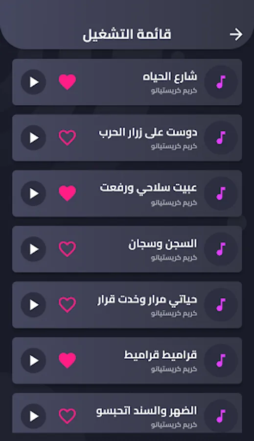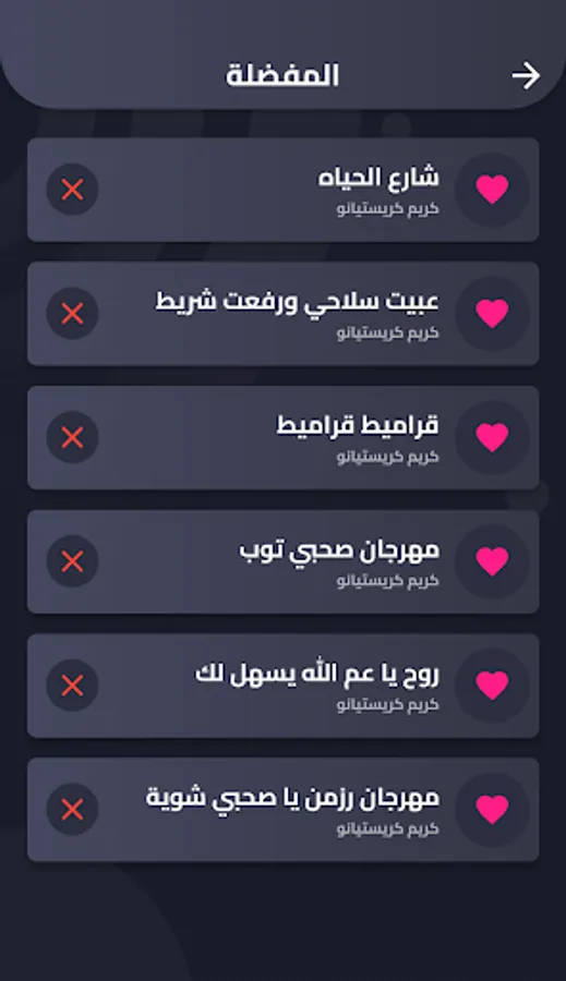 يحتوي تطبيق مهرجانات كريم كريستيانو بدون نت على الأغاني التالية