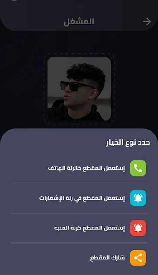كما يمكنك من خلال تطبيق أغاني كريم كريستيانو اختيار المقاطع كرنات للهاتف او كمنبه.