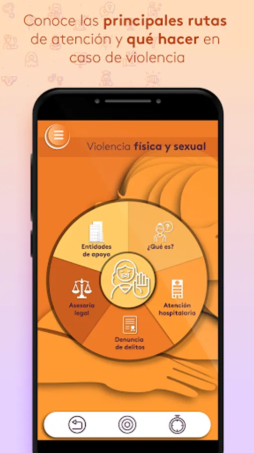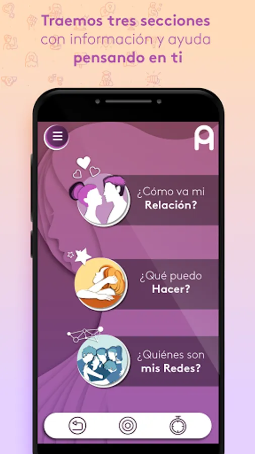 You will find three large sections: on the first call, How is my relationship going? You can access tests to identify the presence of psychological, economic, physical and / or sexual violence in your relationship and how you currently feel in your relationship. In the second section called "What to do?" You will find a description of the care routes for the different types of violence, tips for healthy relationships and alternative actions focused on your personal work to prevent the appearance of violence in your relationship. Finally, in the third section called "Who are my networks?" You will be able to hear testimonials and connect through social networks with other women who have had experiences similar to yours.