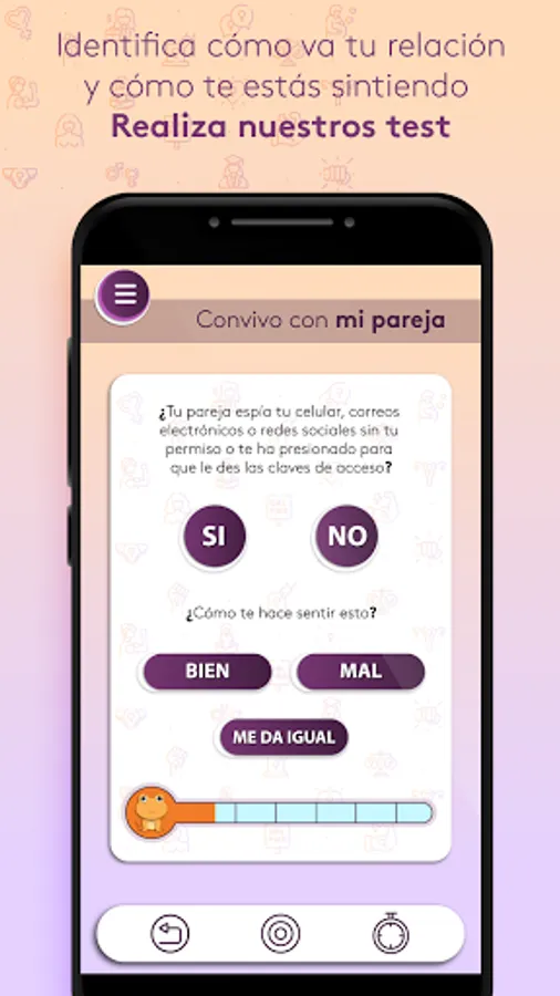 It is important that you know that this app does not replace the legal, psychological or social support that a professional can give you. So the results of the tests you take are not diagnostic and the actions mentioned are suggestions thinking about your well-being, but it is important that you always consult experts in your area.