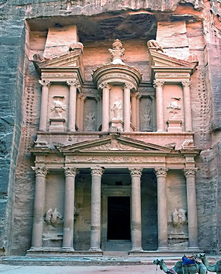 Inhabited since prehistoric times, this Nabataean caravan-city, situated between the Red Sea and the Dead Sea, was an important crossroads between Arabia, Egypt and Syria-Phoenicia. Petra is half-built, half-carved into the rock, and is surrounded by mountains riddled with passages and gorges. It is one of the world's most famous archaeological sites, where ancient Eastern traditions blend with Hellenistic architecture. (UNESCO n. 326)