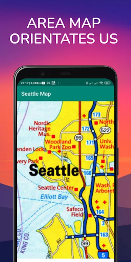 Offline maps for Seattle. Includes a complete set of offline maps for Seattle, things to do and see, area map, historical map of the territory from official sources.