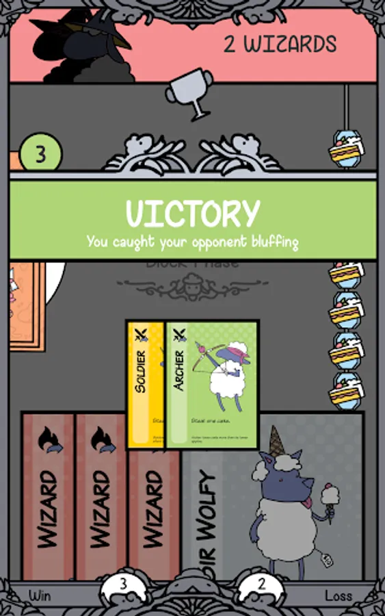 A successful bluff with the Sir Wolfy card will disrespect your gullible opponent with unlockable taunts.