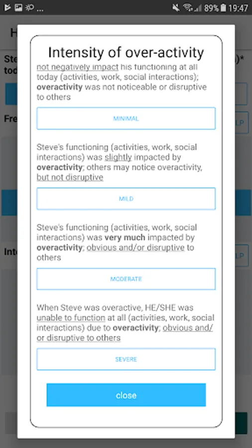 This will be a smartphone based application for caregivers and teachers to record behavioral changes in children and adolescents with neurodevelopmental disorders.