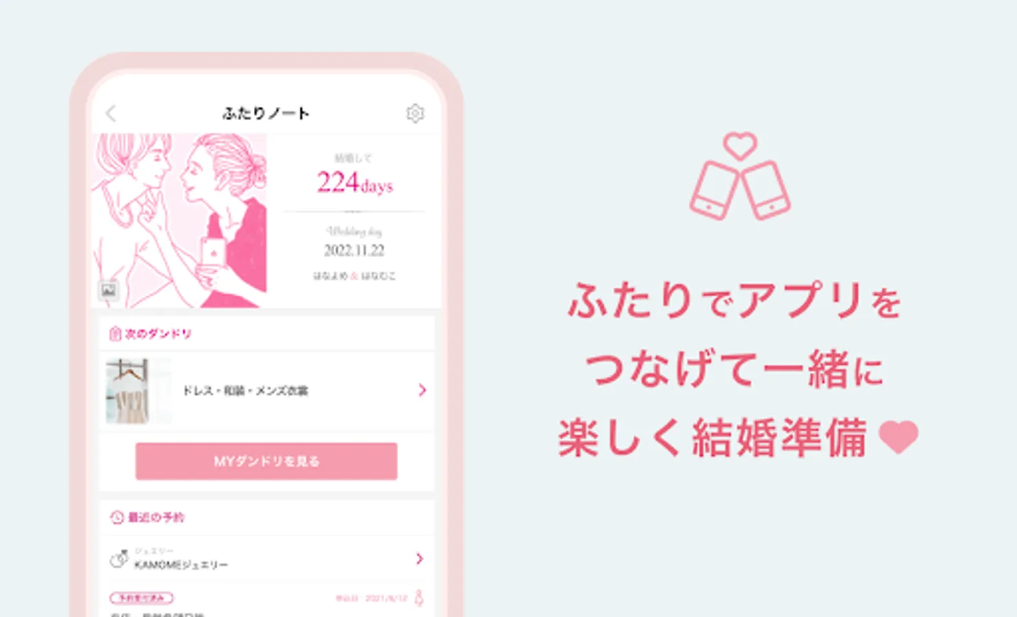 With "Futari Note", you can manage the wedding and new life preparation tasks without missing anything. Share your favorite wedding venues, fair information, editorial articles, etc., and make wedding preparations fun and smooth!