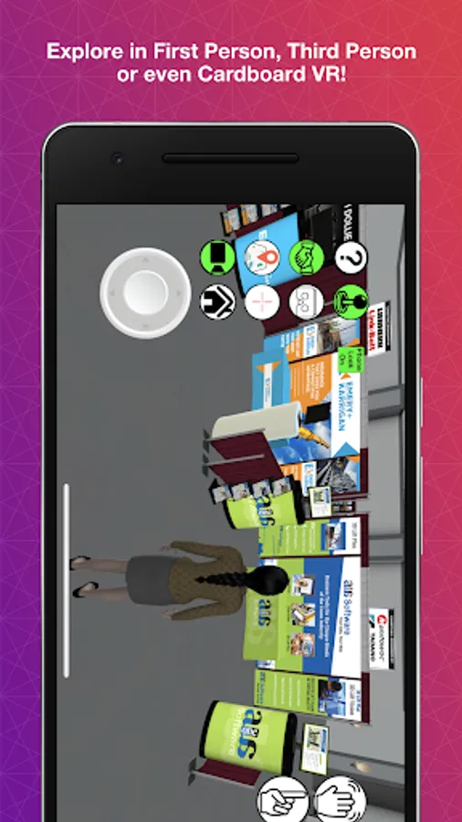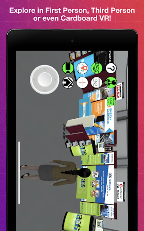 VR Conflux offers a unique virtual experience for conferences, trade shows, and exhibit centers. Wearing a VR headset or Android app , attendees can walk around the conference, attend education sessions, find friends and associates, and talk to them in real time -- all from the comfort of your home or office! While at the exhibit center, attendees can pick up literature to add to your virtual swag bag, watch videos from exhibitors, and even talk to booth personnel as if you were meeting in person. In the lounge area, attendees can network with each other, virtually shake hands and even give each other high fives.