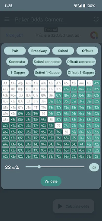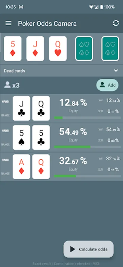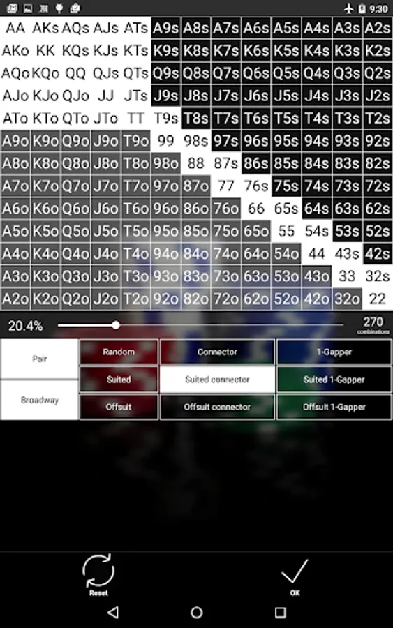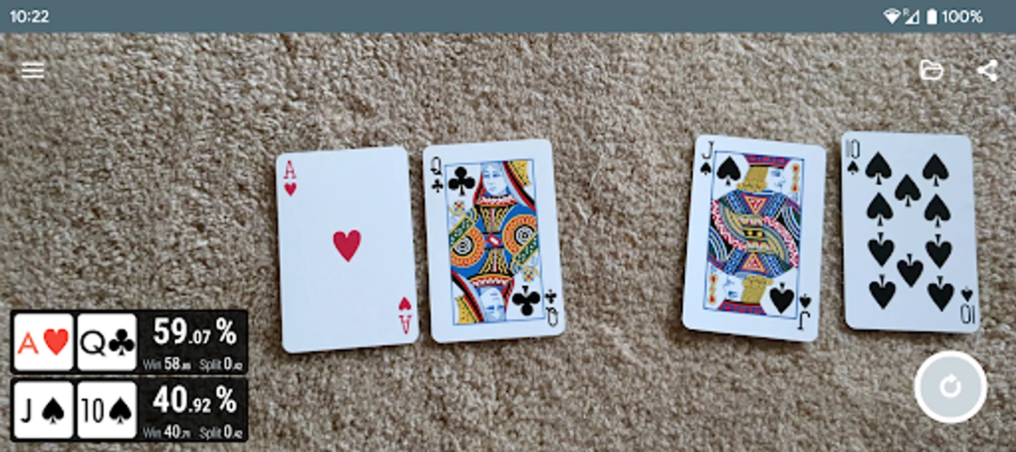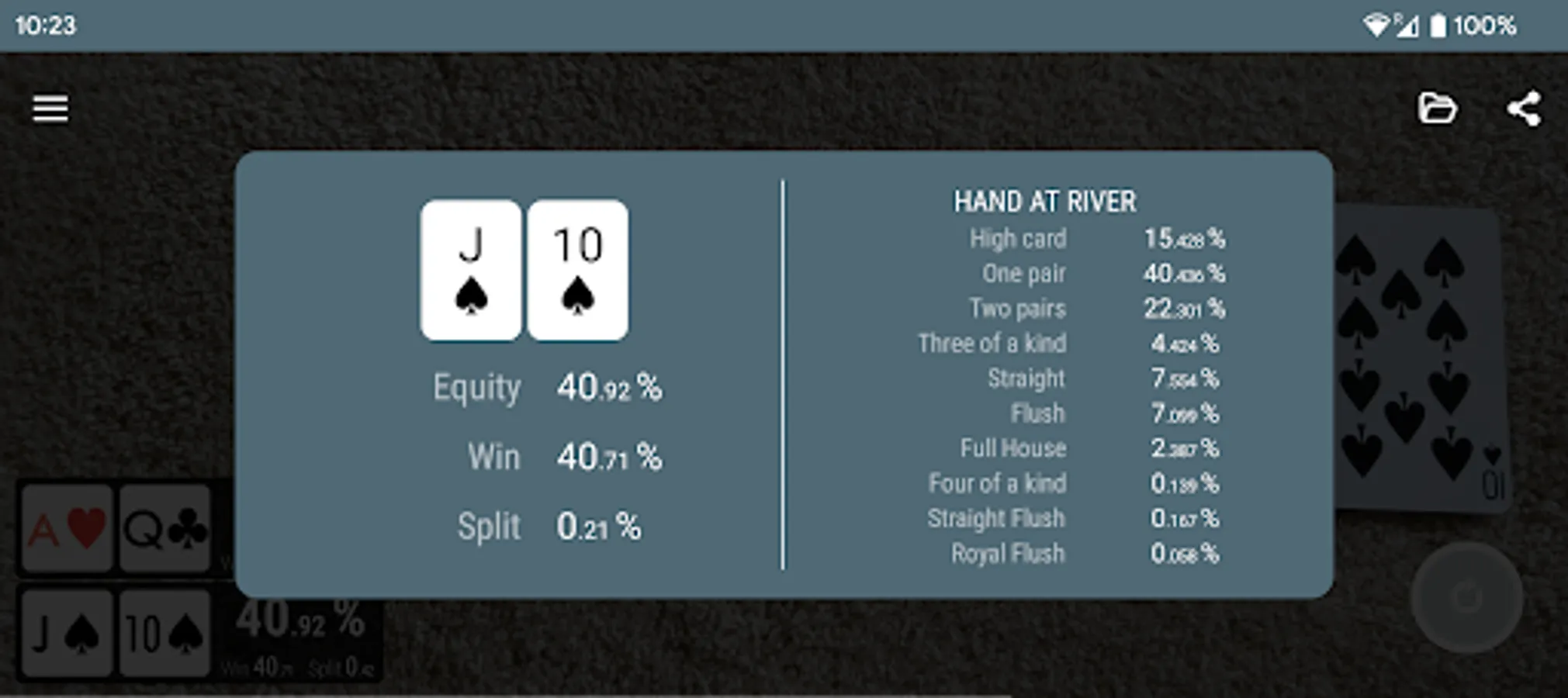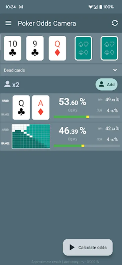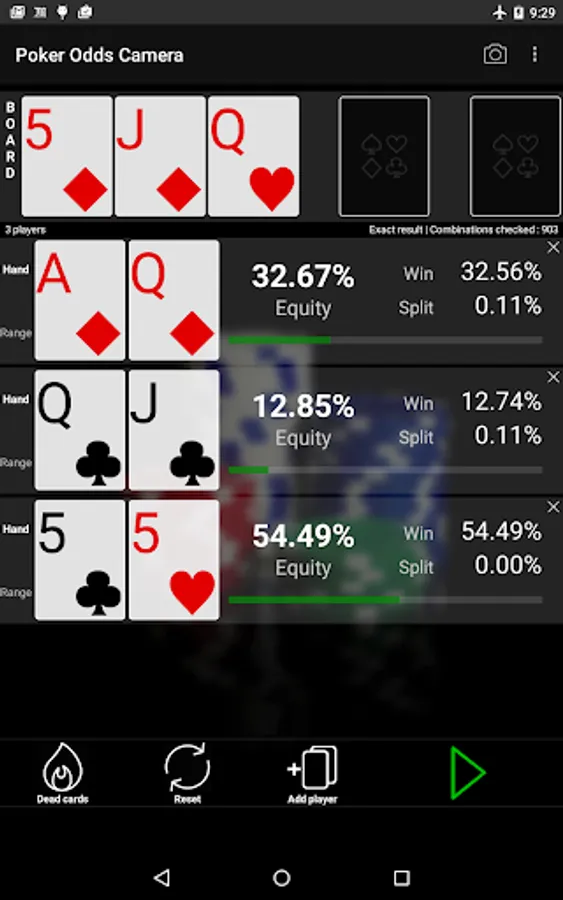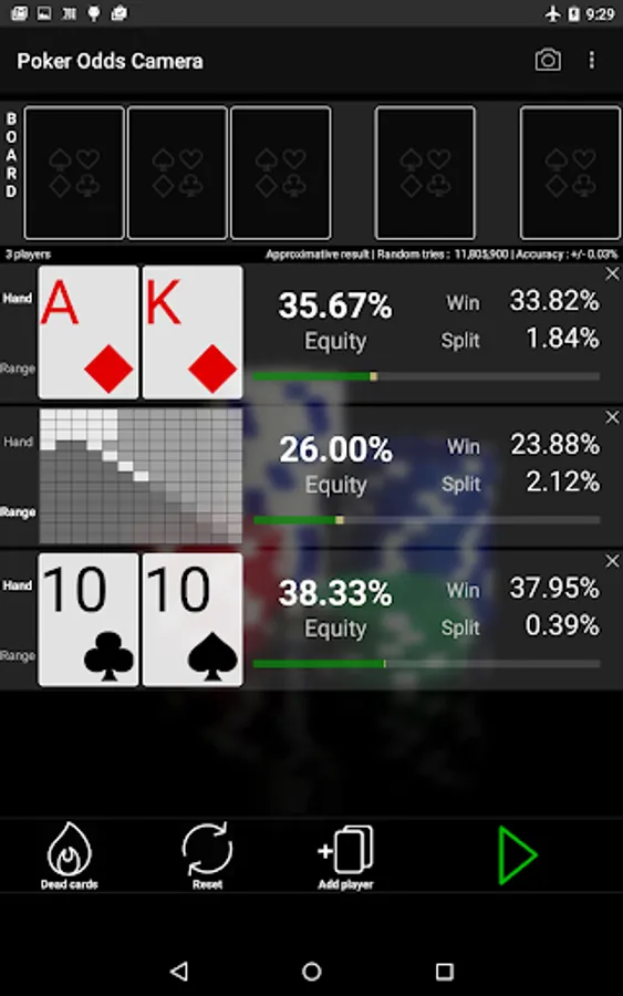 It is also possible to manually choose specific cards, random cards or a range of cards to calculate the equity.