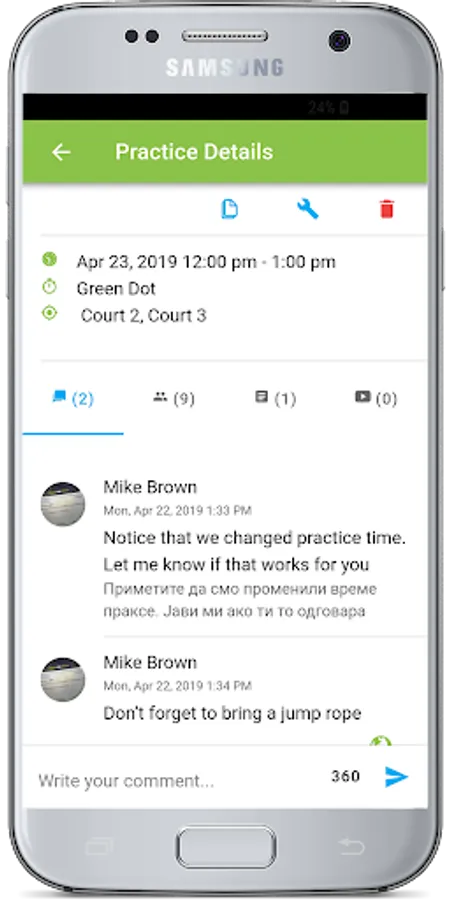 Practice scheduling: quick way to notify all the users about upcoming practices, plans