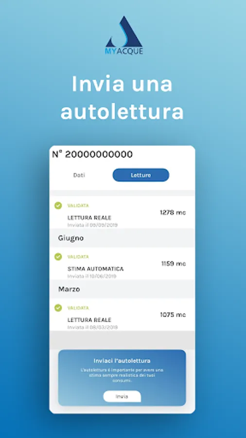 MyAcque is the Acque SpA app dedicated to the citizens of the Lower Valdarno. It lets you manage your water utilities in complete autonomy and in total safety, from the comfort of your smartphone, wherever you are. With MyAcque, the water service is really always with you.