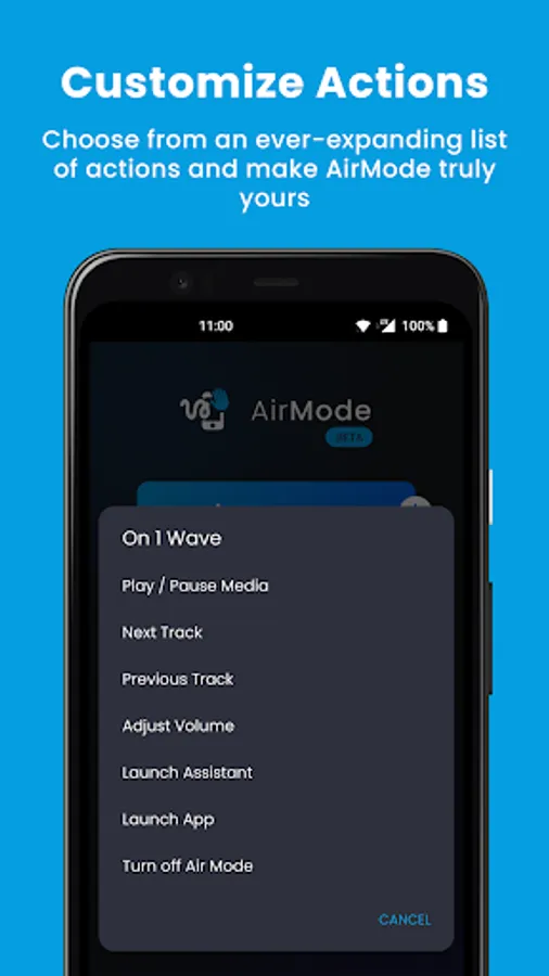 AirMode offers 4 powerful gestures with 10+ customizable actions. You can map any gesture to actions such as control media playback, launch Assistant, open any app and much more.
