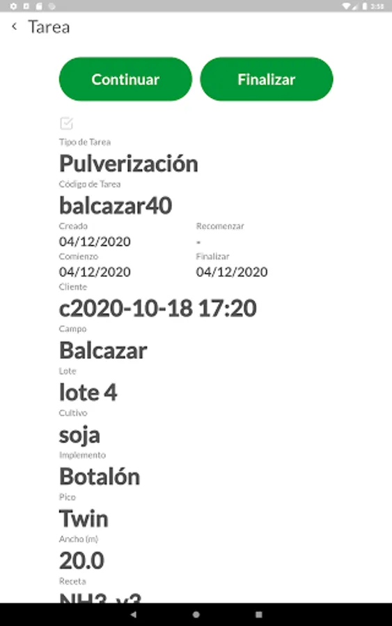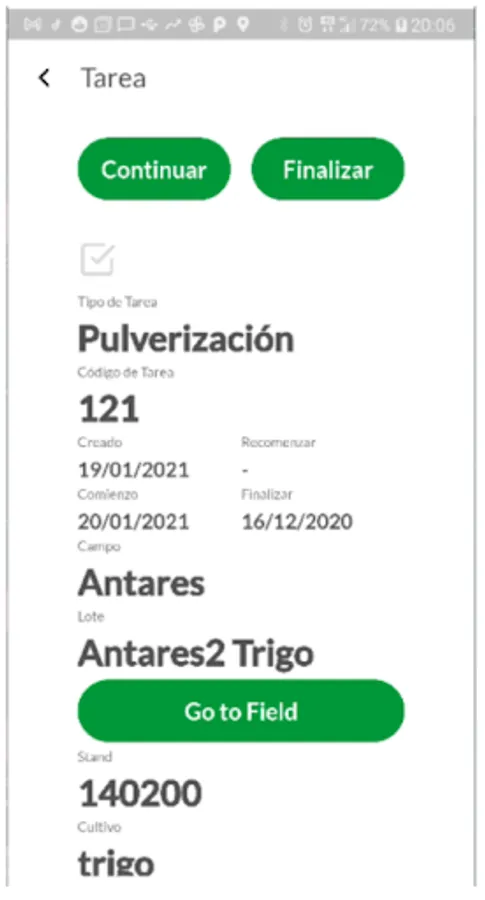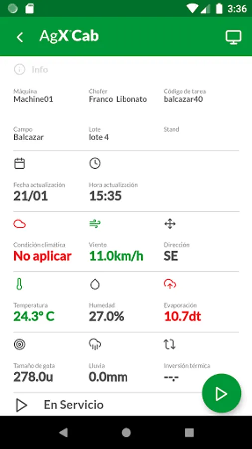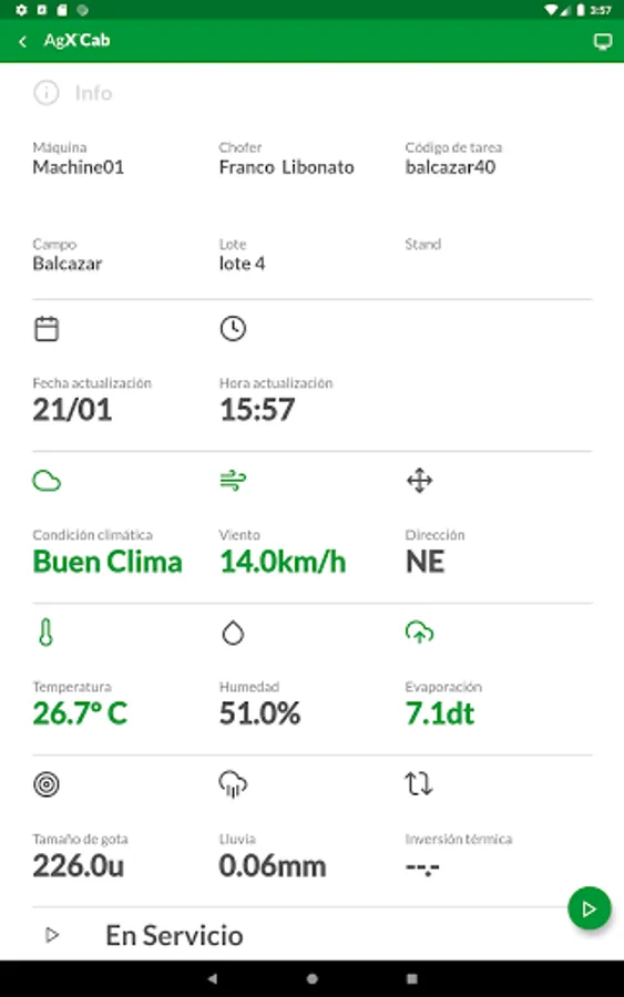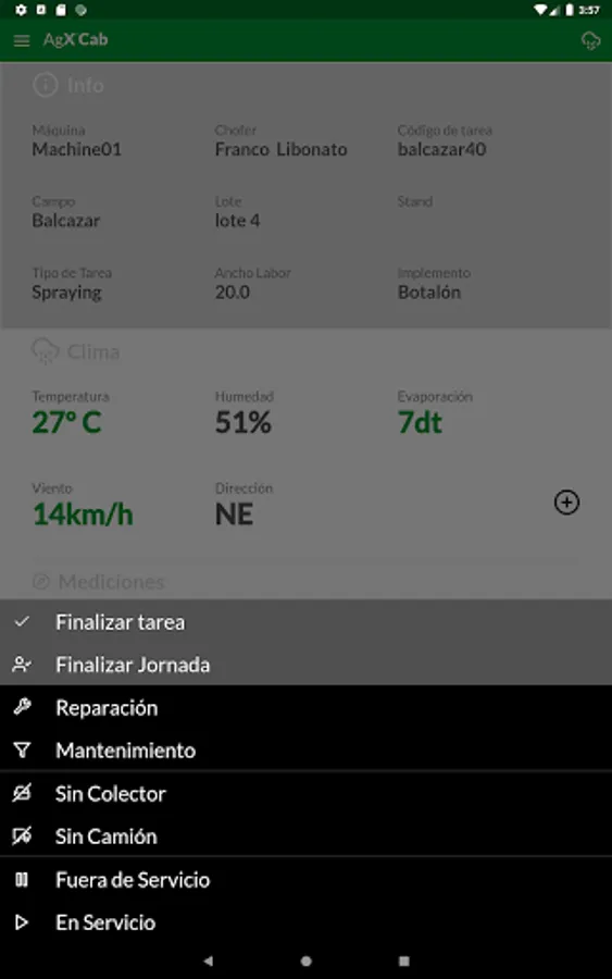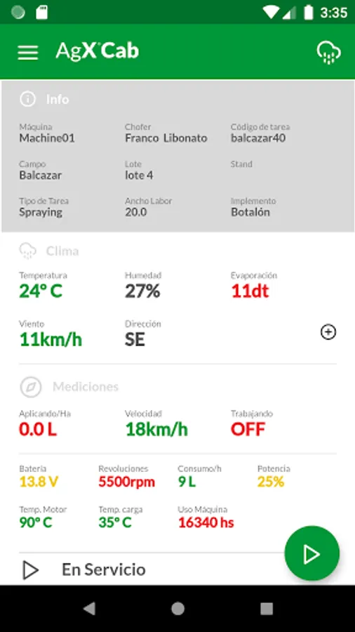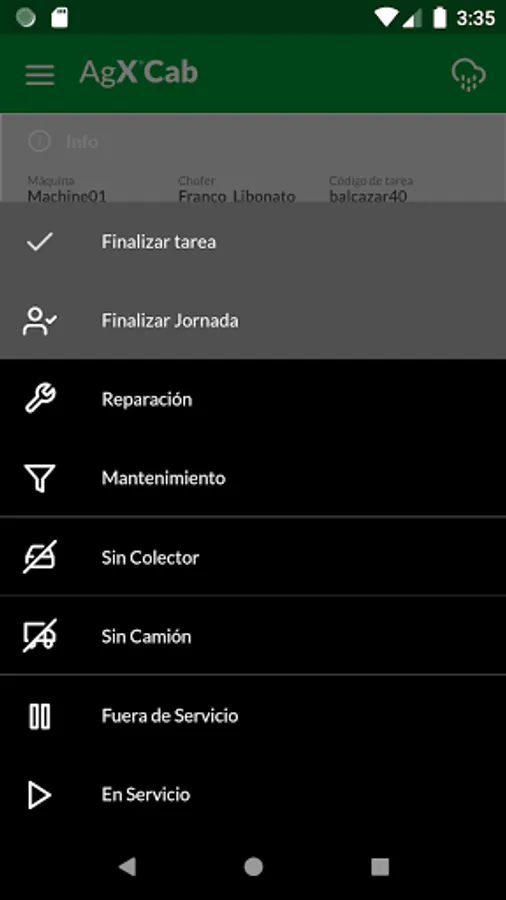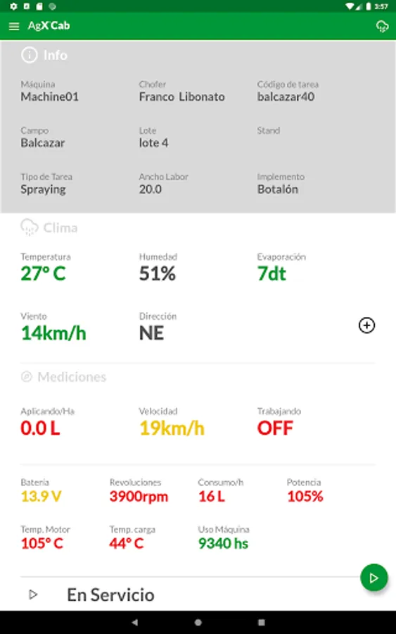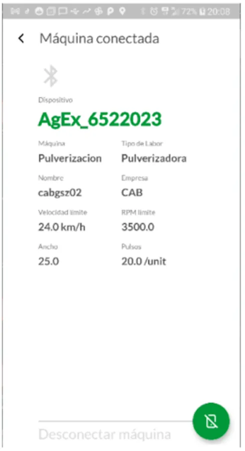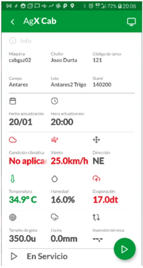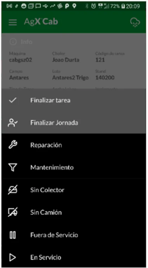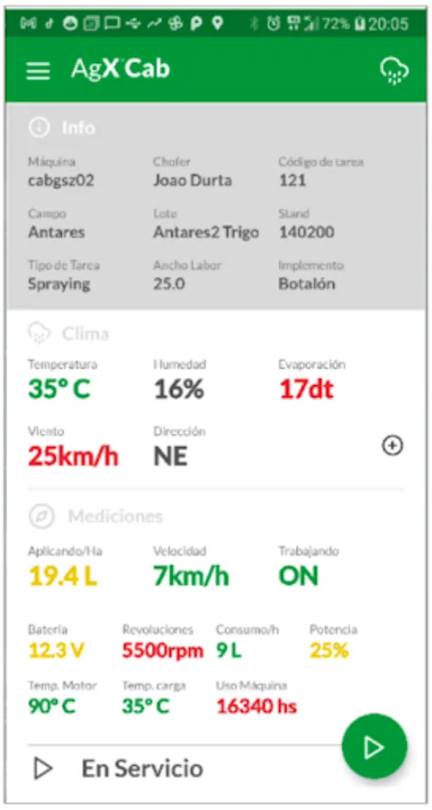 While working, AgX Cab informs the job that you are doing and sends all the variables of the machine to the central system automatically.