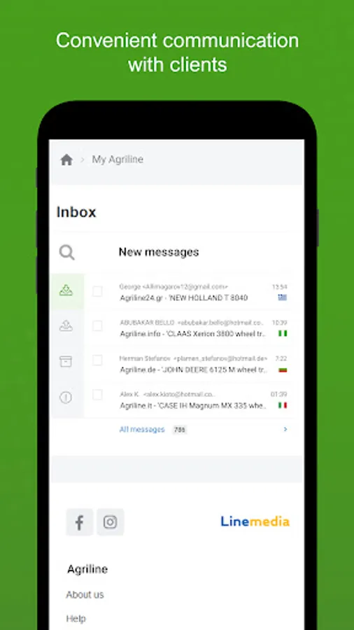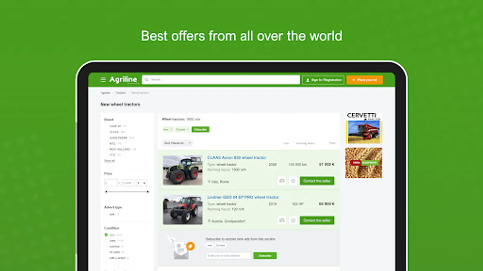 Agriline is a specialized online marketplace for farm equipment: tractors, combines, reapers, and much more, as well as forestry equipment and spare parts.