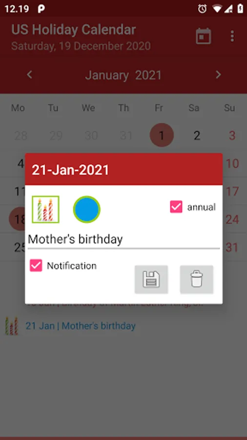 Mark important dates such as birthdays, friends' weddings, dinners, doctor visits, playing basketball.