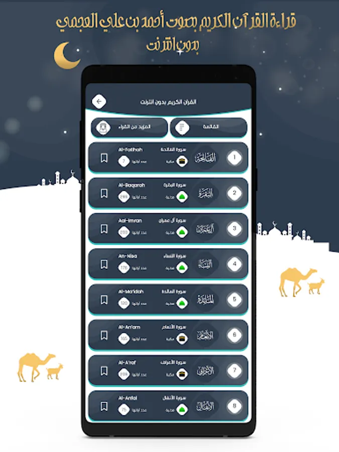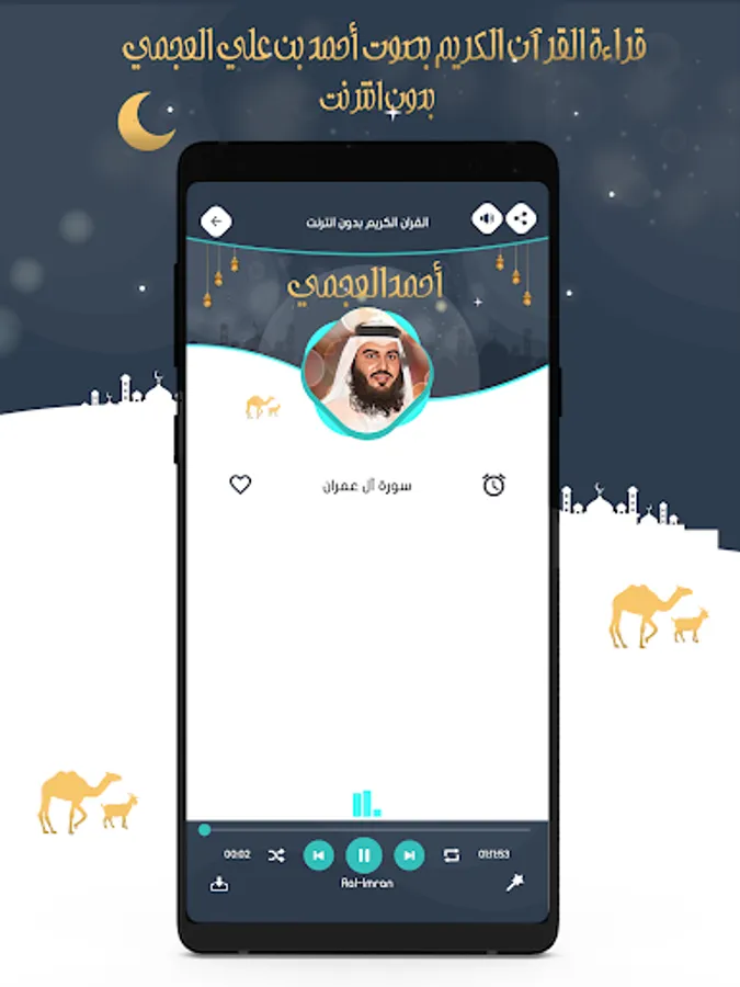 After downloading the application, you can listen to the surahs of the Noble Qur’an with the voice of Sheikh Ahmed bin Ali Al-Ajmi for free, anytime, anywhere, with ease.