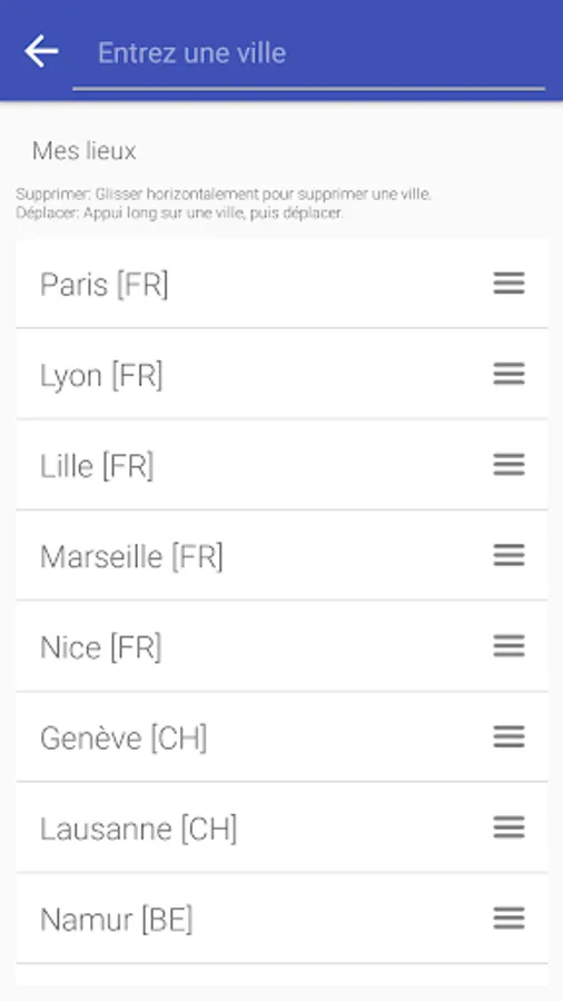 Add all the cities and organize them, then easily follow the weather of the different places.