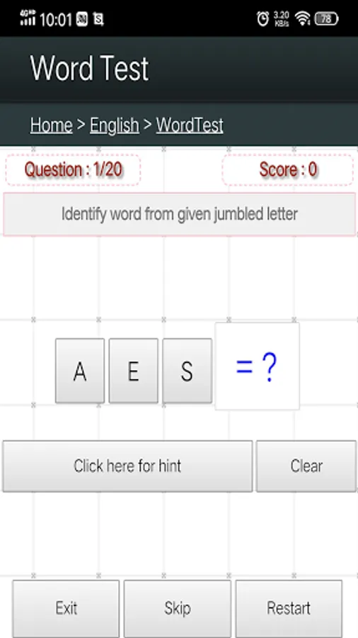 - Each 'wrong answer' or 'use of hint' reduces '1 point'.