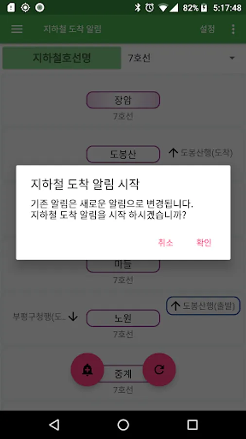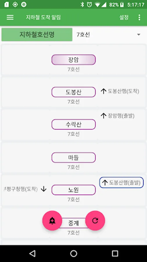 - Notifications arrived in Seoul subway is focused to a notification from the arrival station.