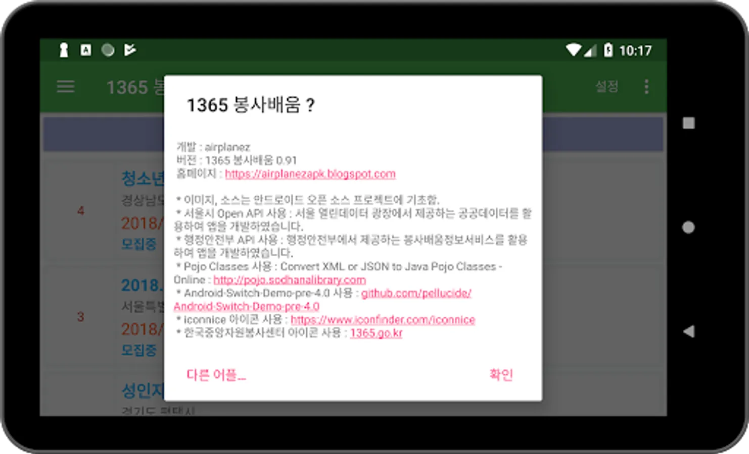 * Public Administration and Security API: by utilizing information service learning services provided by the Ministry of Public Administration and Security has developed the app.