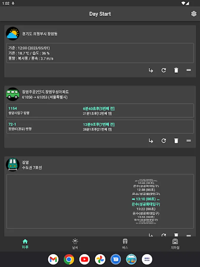 - Start your day by checking the added weather, bus, and subway information in the Daily tab.