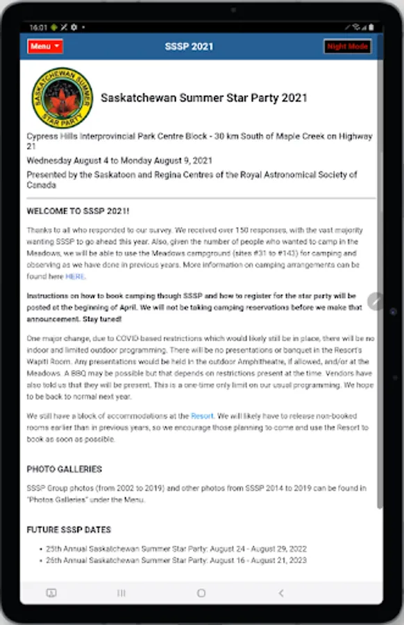 SSSP (Saskatchewan Summer Star Party, Canada) is an annual event held in the Cypress Hills Interprovincial Park around the new moon in August. Anyone interested in astronomy is invited to come and join us to observe and learn about astronomy in some of the best skies on the Canadian prairies!