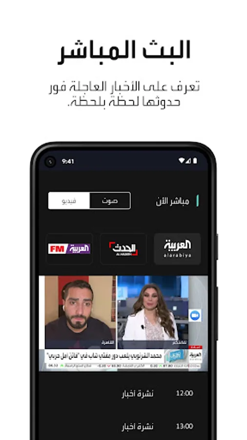 * Live streaming of Al Arabiya News Channel with the option of audio only.