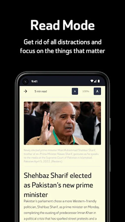 * Experience our kindle like reading mode with less clutter, and choose the font size to your convenience.