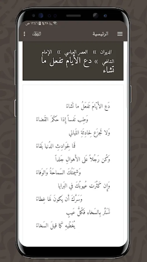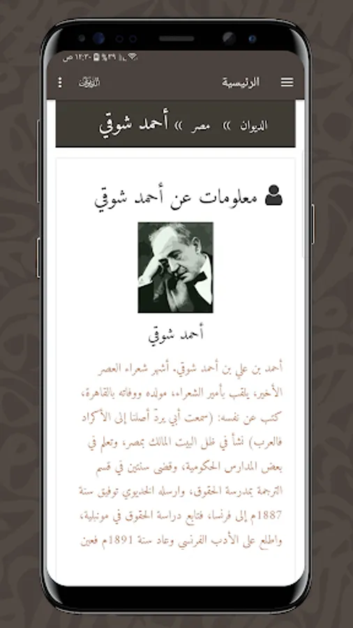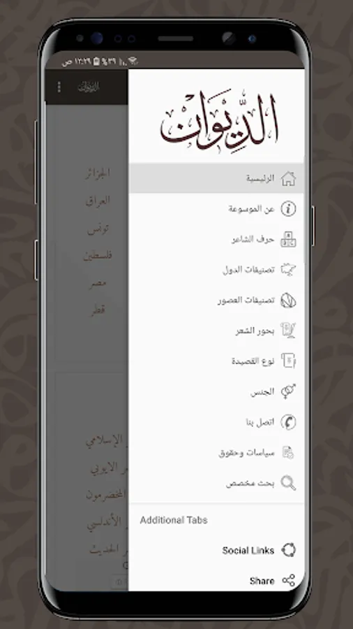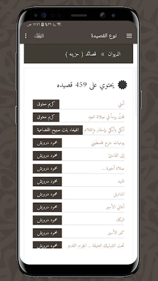 The Diwan is an integrated encyclopedia and an important future reference for poetry and poets, from the pre-Islamic era to the modern era. This will give readers a clear view of the development of poetry and style and the changes in the vocabulary used to this day. One of the most important things we hope to do in the Office is to create an important base for users as reference to all types of poetry and poems old or modern, in easy and uncomplicated ways through the name of the poet or the era to which he belongs or the state or sex or type and sea poem, and ensure the provision of a comprehensive and integrated environment , And linking data to all sections of all types to facilitate the search.
