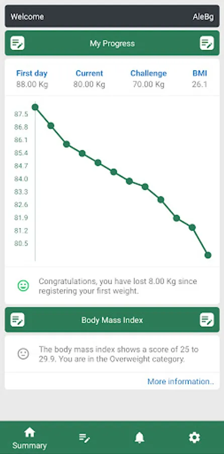 Do you want to have a healthier and more balanced life or increase your body mass? This body weight diary will help you as a complement to your personalized weight loss diet. This weight loss tracker has the features you need to keep you motivated as you continue to challenge. This application has been translated into several languages and English is one of them. It is also perfectly valid for men or women. Finally, we want to indicate that this app is completely free and has no cost. This weight tracker has a log where you can save all your progress day by day. This utility also calculates your BMI (body mass index) and will tell you if you are at your ideal weight or not.