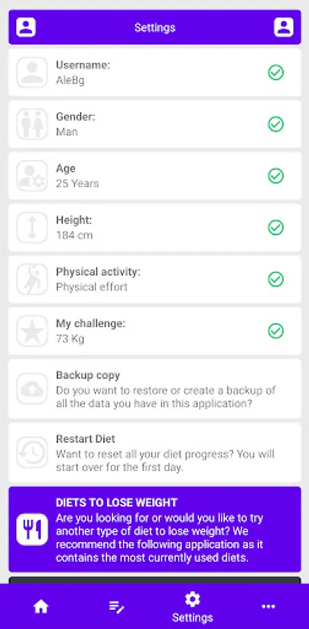 In this application we will find several utilities that will help us to have a better control of the diet that we are following. We will find a diary where we can write down our weight each day. On the other hand, we will find another personal diary in which we can save our thoughts. We also have the ability to create shopping lists which you can customize to your liking. Finally and quite important, a notification section that you can customize to your liking.