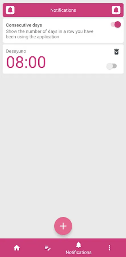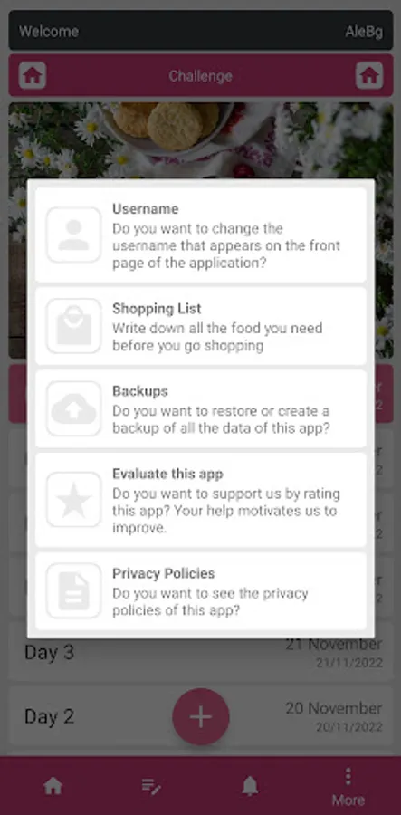 Using this app is very simple, you just have to press the '+' icon in the home section and a personalized menu for the day will be generated. If you don't like the suggested food, you can change it to your liking.