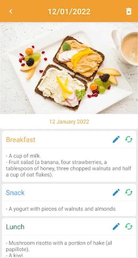 This diet plan for beginners allows you to have your personalized and balanced diet plan to lose weight (no limit of days) since you can customize the meals of the day totally to your liking. You don't like the options we offer you? Hassle free, you can edit the meals manually without any hassle. On the other hand, you will have at your disposal a section to create your shopping lists and even another section to create personalized alerts so that you do not forget any meal of the day.