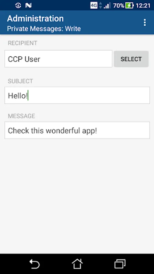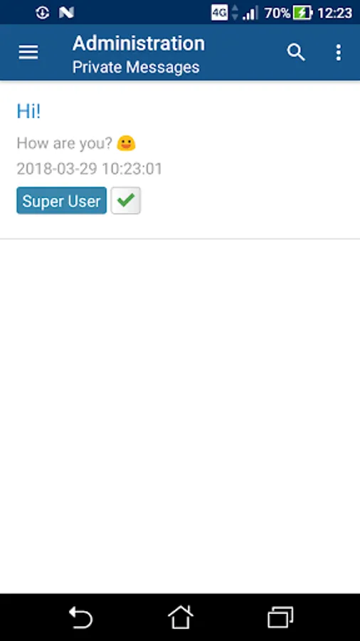 Joomlapp - Messages allows you to send messages to other Back-end Joomla! users. You may read, write, send, and delete messages here. In addition, you may also manage message settings and grouping options