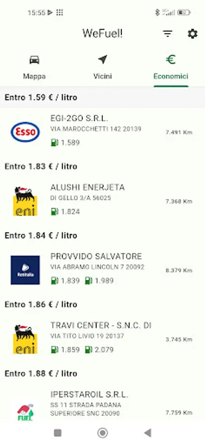 WeFuel provides you with real-time information on all petrol stations in your area, indicating the closest one and offering you options based on price, distance and fuel type.