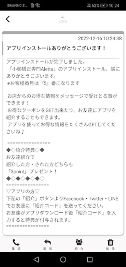 In this app, you can receive the latest information of Aletta and use useful functions.