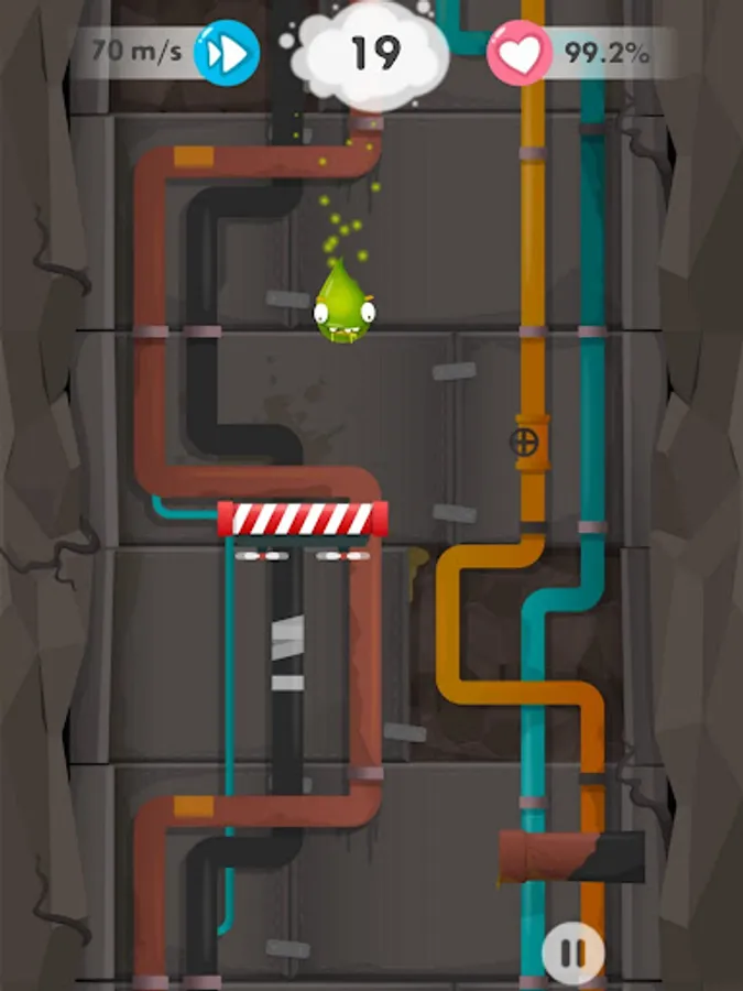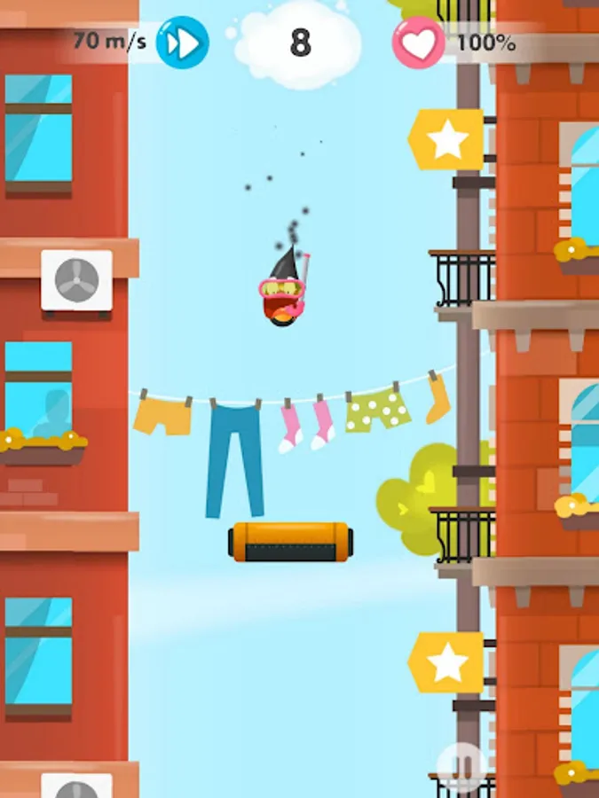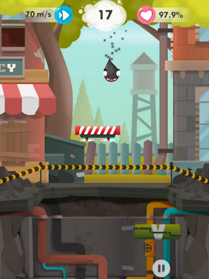 This game is a new look at arcades. You do not need to jump, do not fly, do not climb anywhere, but fall! Yes, yes, fall. Jump from the springboard into the unknown and fly as far as you can. But not everything is so easy, on your way there will be many obstacles that will prevent your record. And do not forget to keep track of your volume and replenish it in time, otherwise you will disappear. Collect bonuses and activate new drops, because there are a lot of them in the game. And each drop has its own characteristics. Play for each of them!